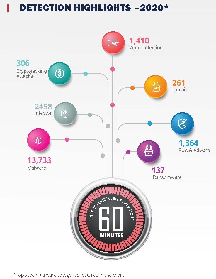 Βασισμένο στην ετήσια έκθεση απειλών της Seqrite, για το 2020
